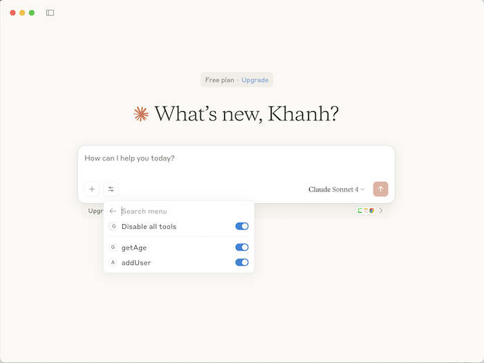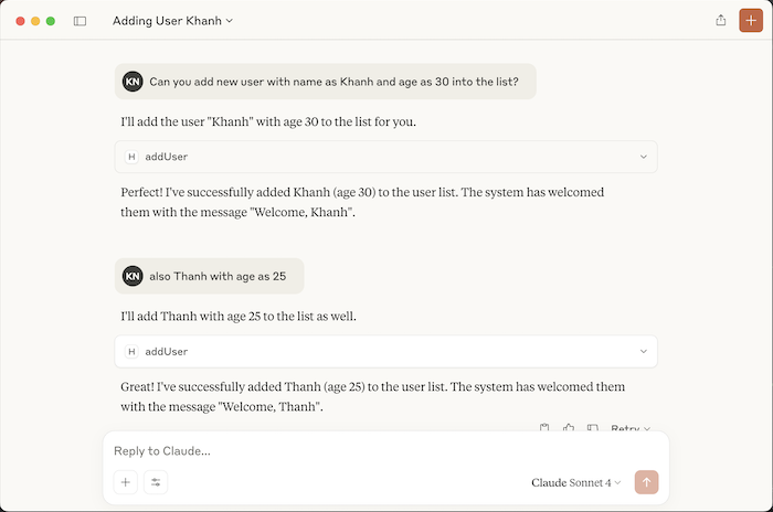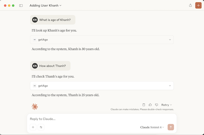 For this example, I’m exposing two tools: “addUser” and “getAge”!