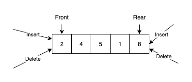 Interface Deque (short for Double-Ended Queue) in Java is an interface that defines a data structure that allows us to add or remove elements at the front or rear: