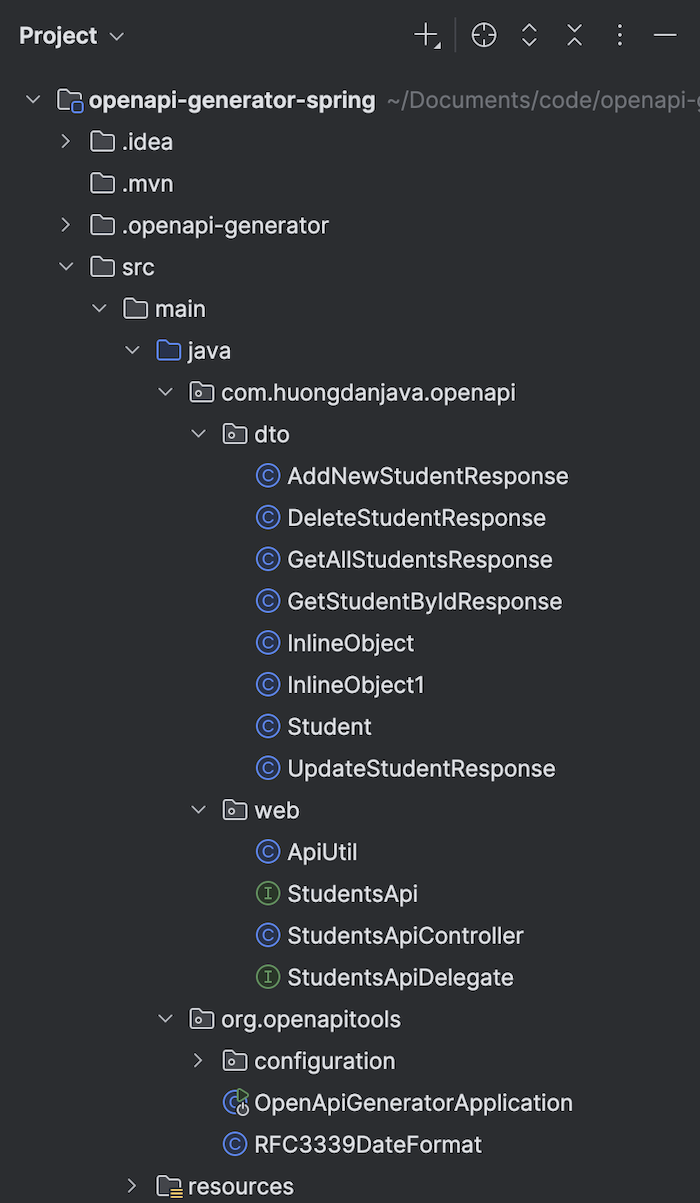As you can see, the OpenAPI Generator Maven plugin has generated a Spring project.