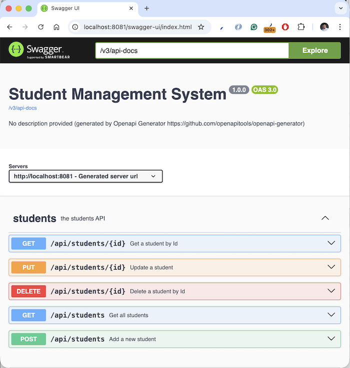 Currently, we have not implemented URL requests. You can add a new class that implements the StudentsApiDelegate interface to do this. My example is as follows: